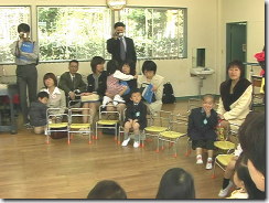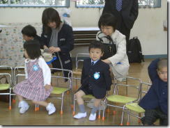 入園式が始まるまでお部屋で待機。恵太はちょっと緊張していたのか他の子よりおとなしかったです