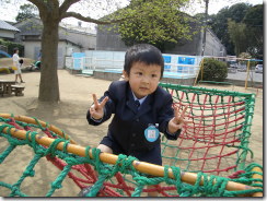 式が終わったらさっそく園庭でお遊び。 立派なスーツが汚れないかとヒヤヒヤしました。