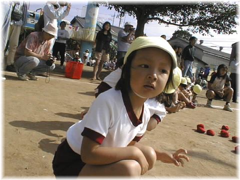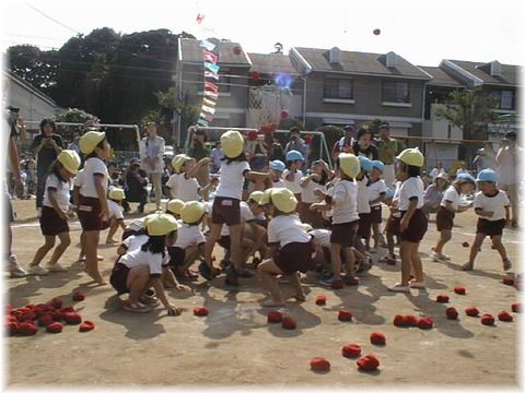 年少組による「玉入れ」の模様。(中央で立ち上がっているのが千佳) |
