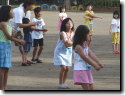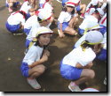 今日は小学校の運動会がありました。千佳が小学校に入ってから初めての運動会です。前日の夜まで雨が降っていて今日の運動会も中止になるかと心配しましたが、なんとか降らずに運動会ができてよかったです。赤・青・白・黄色の4組に分かれて競技しました。千佳は黄色組みです。徒競走では千佳は2等賞。「は−い、ゆうびんです」という競技では3等賞でした。1年生全員による「おさかな天国」の踊りでは練習した通りにうまくできました。(写真は徒競走の順番を待っているところです)