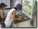 今年も夏休み恒例のJR東日本主催の「ポケモンのスタンプラリー」にお父さんと参加しました。途中、東京駅付近の「ポケモンセンター」に立ち寄り「ポケモーション」(写真右)を買ってもらいました。言葉や絵文字などが全部で250種類以上も表示できます。 | |  |