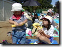 今日は、運動会がありました。千佳は今年も黄色組でした。今回は得点には貢献できなかったけど一生懸命がんばりました。(写真はお昼休みに恵太とバナナを食べているところ) | |