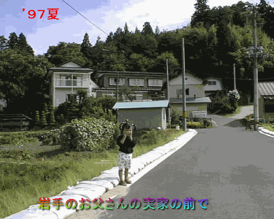 岩手の実家の前でポーズをとる千佳。