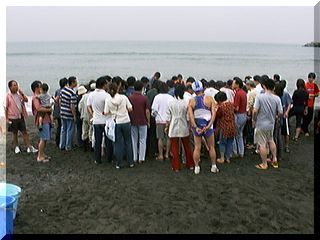 平成11年5月29日(土) 茅ヶ崎海岸にて2年ぶりに「地引き網大会」が催されました。 今年も難波次長が企画し各方面から多数の参加があり、家族づれも含めて130名近い人で賑わいました。 昨年は都合により開催されませんでしたが、毎回参加されている方や今回始めての方もおり500本近いビール はまたたく間に空き缶と化しました。肝心の地引き網の収穫の方ですが、今回は不作でした。 |