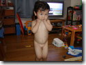 今日で2歳になりました。毎日、「となりのトトロ」と「千と千尋の神隠し」のビデオを見ています。まだちょっとの単語しか話せないけど、そのうちお話が出来るように頑張るね。毎日、イタズラしてお母さんを困らせています。オムツもまだ無理みたい。 | |