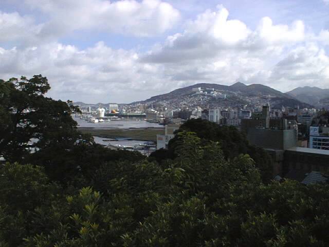 ![]() | セミの大合唱で目が覚め。朝食も早めに済ませて本日の行動開始。まずは近くの「大浦天主堂」→「グラバー園」へ。8時過ぎだというのに団体客はもう来園していました。写真はグラバー園の頂上より長崎港を臨んだものです。 |