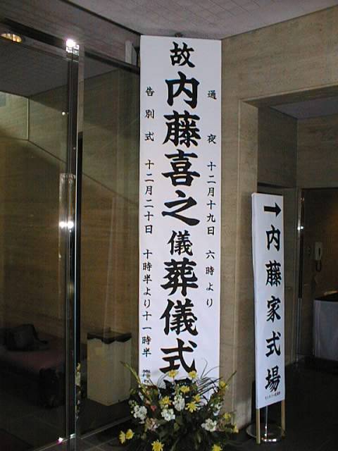 職場の同僚である内藤喜之君が平成10年12月16日に急逝しました。享年39才。12月29日が40才の誕生日でした。あまりにも突然で早過ぎる死に、ご遺族の方はもとより我々同僚も驚き、今でも信じられない心境です。ここでは告別式の模様を掲載しました。心よりご冥福をお祈り致します。