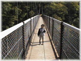 日光を目指す途中、「回顧の滝」に立ち寄り、ご覧のつり橋 で記念写真。 |