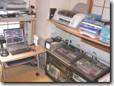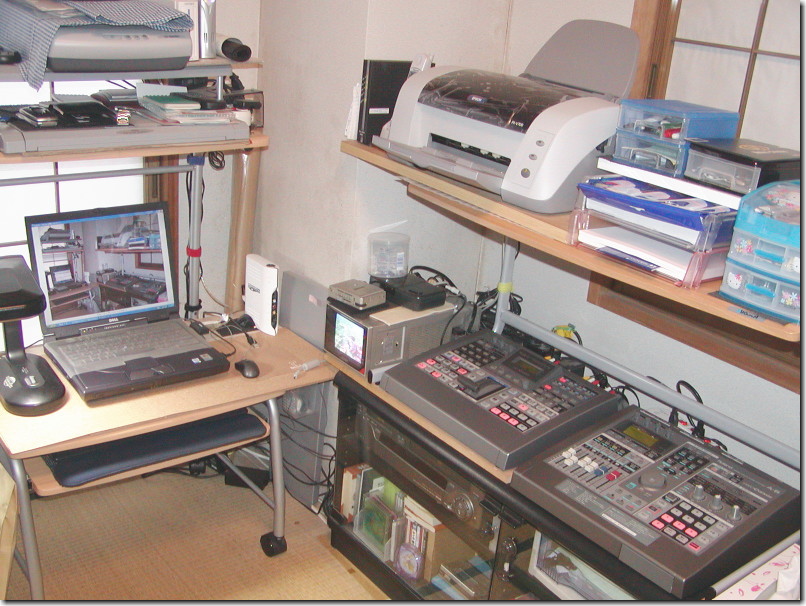 (右の写真は私の唯一の”城”?。パソコンと編集機器が並び手狭な我が家ではヒンシュクを買っています。) |