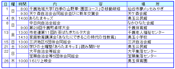 年が明けた奥玉地区では、毎週いずれかの自治会の新年会・祝年会が開催されています。11日は寺崎前をはじめ大平に中日向と花貫。17日には宝築。18日は町下で開催され、各会場には多くの自治会員や来賓が集い、新年や年祝いに盛り上がっていました。新春講演会や研修会を抱き合わせたり、新婚さんや新成人のお祝いを加えるなど特色が表れていました。今後は25日が三沢。最後は2月1日の天ケ森が予定されている。2月から自治会等の総会が控えており主催する側もされる側も大変ご苦労様です。