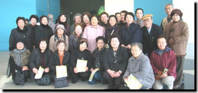 千厩地域大学「四季の山野草・園芸コース」の7回目講座「とうほく蘭展」移動研修が2月1日、仙台市夢メッセみやぎに移動して、岩手エビネ愛好会松井哲氏を講師に受講生ら27人が参加して行われました。「とうほく蘭展&バラとガーデニングフェスタ2009」は1月29日〜2月2日まで開催され今年で16回目になる。会場は圧倒的なスケールで迫力満点の大型洋蘭ディスプレイが華麗な空間を演出し様々な種類、色合いの蘭がところ狭しと咲き競っていた。帰り道には塩釜神社へ寄って参拝も行い、受講生33人中18人に終了証を交付し最後を締め括りました。