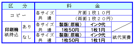 改正点:コピー料金同じ。印刷機製版半額、インク代追加。