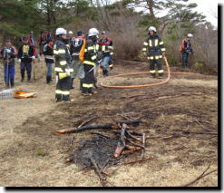 キャンプ場開きを直前にした四月十九日、飛ケ森キャンプ場内で林野火災が発生し、東屋付近の原野約2eを焼きました。この火災は、県外からきたキャンパーが、調理のために枯れ木に火をつけたところ周囲の枯れ草に燃え広がったもので、本人が消防に通報。駆け付けた消防署員や消防団員約百人の懸命な消火活動により延焼を防ぎ、被害を最小限に食い止めました。
