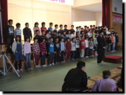 奥玉小児童による合唱はお客さんといっしょに「ふるさと」を歌いました。