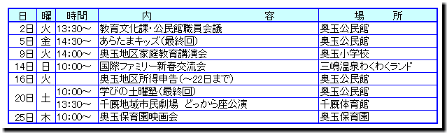 ★発行:奥玉公民館 電話:0191(56)2950 FAX:0191(56)2906