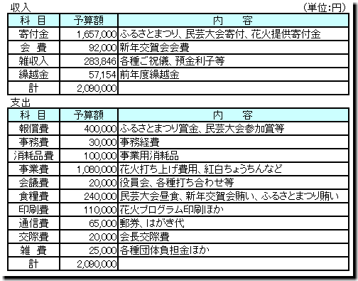 奥玉振興協議会・事業計画と予算