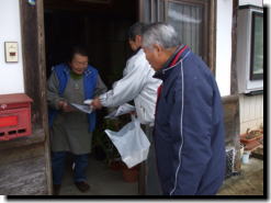 3月25日、千厩地域防犯協会奥玉支部(吉田幸昌支部長)と防犯パトロール隊(長嶋誠也隊長)では、地区内で一人暮らしをしている高齢者宅を訪問して、犯罪に遭わないようにと啓発活動を行いました。奥玉地区内では、昨年末に車上あらし被害が、三月には空き巣被害が発生していますので、訪問にあたった役員やパトロール隊員も、「犯罪は他人事でなくなっている」と、注意を促していました。