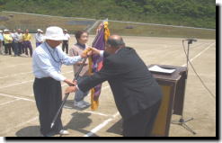千厩町老人スポーツ大会が、6月14日、千厩多目的グランドで行われ、町内四地区の老人クラブから350人の選手が参加して、シルバーパワー全開の熱戦を繰り広げました。 前日からの雨で二年連続の屋内開催が心配されましたが、当日は気持ちよく晴れ渡り、徒競争や玉入れなどの九種目で勝敗が競われました。 最初の種目の徒競走から奥玉チームは一位を独占して、好調にスタート。 競技は進み、最終種目を向かえ、二位千厩チームとの差はわずか十点。最終種目の長寿リレーでの奥玉チームの作戦は「前を抜くことができないので、先攻逃げ切り」。いざ、競技が始まると、一度も抜かれることはなく、ダントツの一位で幕を閉じました。他のチームの成績は、三位が磐清水、四位が小梨となりました。