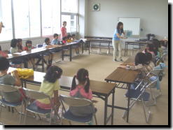6月11日から奥玉公民館を会場に、一関市の四日市由美先生とアラナ・グリーン先生を迎え、学びの土曜塾がスタートしました。第一回目は、英語での自己紹介の後、カードを使った英語遊びを行いました。この学びの土曜塾は、ゲームや日常会話を英語を使って話すことで、自然と英会話に親しめる機会になり、学習内容もバス遠足などたくさんのお楽しみを計画しております。