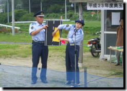 「横断歩道は手を挙げて左右確認」 平成23年度奥玉地区交通安全ゲートボール大会開催