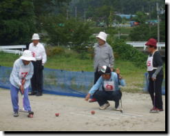奥玉老人クラブ連合会と東磐井地区交通安全協会奥玉分会主催の奥玉地区交通安全ゲートボール大会が、8月26日おくたま親水公園で行われ、8チームが参加し、熱戦を展開しました。最初に、五嶋秋子一関市専任交通安全指導員から交通安全の指導があり、夜間出歩かなければ交通事故には遭わないが、出歩くのであればできるだけ黒い服装は避け、持ち物であれば白っぽいタオル等を持参するように話しがありました。コート内に入る時には、左右を確認し、横断歩道を渡るというルールがあり、いざ、試合が始まるとゲームに熱中するあまり安全確認を怠り、うっかり減点が各試合で発生しました。 試合の結果、優勝が三沢チーム、準優勝が天ケ森チームが、第3位が町下チーム、敢闘賞が大平チームでした。