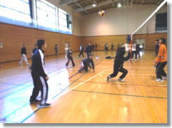 奥玉地区子供会育成会連絡協議会と奥玉公民館が共催した子供会対抗バレーボール大会が、11月10日、維新館で行われました。 参加チームは小学3年生以上の男女混合で構成していますが、子供会の人数の減少により、三沢と天ケ森、寺崎前と花貫が混成チームとなり、計6チームによる総当たり戦(ブロック戦)で行いました。 各チームは、初めてバレーボールをする子供もいることから、少ない期間ですが、週2回の練習を経て、今回の大会に臨みました。