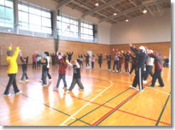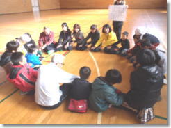 奥玉体育協会と奥玉公民館が主催した第1回スポーツ教室が、11月30日、維新館で行われました。今回は、レクリエーションをテーマに、レクリエーション協会インストラクターの小野寺美智子さん(千厩町奥玉)と村上睦子さん(大東町)を講師に迎え、「動物絵あわせ」、「チャレンジ・ザ・スティック」等様々な楽しい内容で行われました。 このうち、真ん中の的に入るように球を転がす「イーハトーブ」は、常に笑いと声援が絶えず、大変盛り上がり、参加者からは、「楽しかったので、また是非やりたい」という声も聞かれ、あっという間の楽しい2時間となりました。 好評につき、第2回目を2月に予定しています。どなたでも参加できますので、大勢の方の参加をお待ちしています。