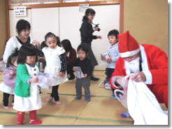 日頃、公民館を使用している子育て支援グループスマイルキッズのクリスマス会が、12月18日、奥玉公民館で行われました。 当日は、宝探しに続き、音楽会、絵本の読み聞かせ、ケーキの飾りつけなど、親子で楽しい時間を過ごしました。 また、公民館では、今回の参加者を対象に、子育て支援講座「親子ヨガ」を計画し、さらに親子でのスキンシップをはかってもらおうと考えています。