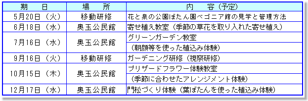 3月上旬に全戸配布しましたチラシの中で、ガーデニング実践コースの期日が誤って9月16日(水)と記載しておりましたが、正しくは、9月16日(火)ですので、お詫びして訂正申し上げます。