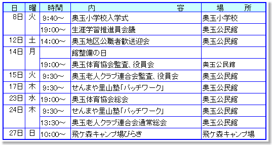 ★発行:奥玉公民館 電話:0191(56)2950 FAX:0191(56)2906