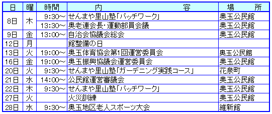 ※雨天時の確認は奥玉公民館へ(午前8時まで)