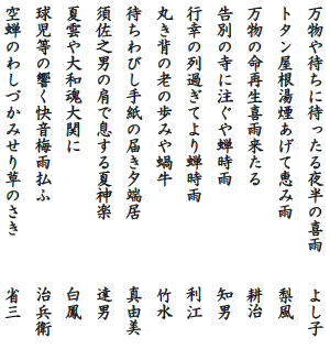 | お盆を過ぎても暑い日が続いています。今月は、ふるさとまつりや各地域のお祭りが開催されたので、皆さん大いに楽しまれたことと思います。ついでと言ってはなんですが、9月7日(日)には、飛ケ森キャンプ場で「とびがもり水車音楽祭」が開催されます。音楽を奏でる水車がお披露目されるほか、ジャズプレーヤーの岡淳さん率いる「音楽水車プロジェクトバンド」が熱い演奏を聞かせてくれます。まだまだ暑い夏を終わらせないよう、大勢の皆さんにご来場いただき、盛り上がりたいと思います。(鎌) |
