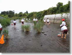 8 月29 日(金)に、岩手県環境アドバイザー千葉裕さんを講師に迎え、千厩川2 か所で水生生物調査を実施しました。これは、棲んでいる生物を指標にして川の水質を調査するもので、最初に調査した天梅橋付近では、サワガニやカジカが見つかるなどきれいな水質であること、2 か所目の診療所裏では、ヒラタドロムシが見つかったことから、少し汚れた水質であることを確認しました。
