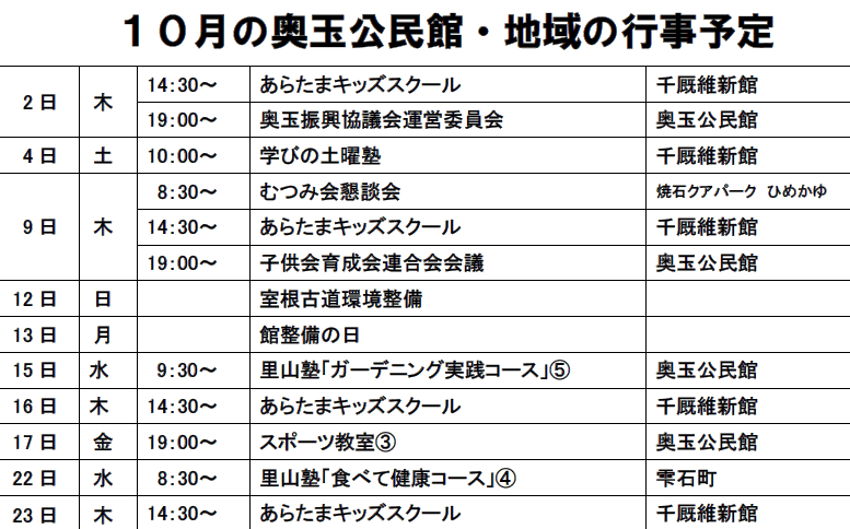 奥玉公民館では毎年、奥玉小学校4、5、6年生の総合学習と共催で「少年自然奉仕体験講座」を開催しています。今年は、8 月29 日に4 年生の「川の探検」、9月18 日に6 年生の「奥玉探検」を開催しましたので、その様子をご紹介します。