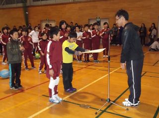 奥玉地区子供会育成会連絡協議会と奥玉公民館が主催する、第29回奥玉地区子供会バレーボール大会が、11月9日(日)に千厩維新館で開催されました。 今年は、「大平」「宝築」「三沢」「天ヶ森」「中日向」「花貫」が単独チームで参加したほか、「町下」と「寺崎前」が合同チームを組んで参加し、計7チームが総当たりのリーグ戦で優勝を争いました。各チームとも、大会前の11月4日から7日にかけて週に2回ずつの練習を積み、気合十分で試合に臨みました。 熱戦が繰り広げられた結果、「中日向」が6戦全勝で優勝を勝ち取り、準優勝は「宝築」、第3位は「大平」という結果になりました。参加された皆さんお疲れ様でした。