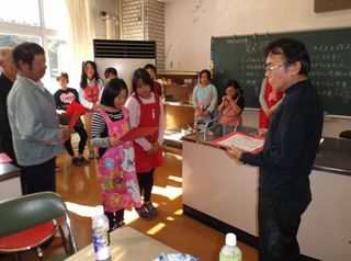 奥玉小学校の総合学習と奥玉公民館の少年自然奉仕体験講座として実施していた稲作体験の収穫祭が、指導者の吉田常夫さん(入山沢)、加藤正勝さん(宿下)、岩渕春喜さん(中日向)を招いて、11月8日(土)に奥玉小学校で開催されました。自分たちで収穫した新米を炊き、親子でカレーライスを作ってみんなで会食しましたが、4班に分かれて作ったカレーは、それぞれ独自の工夫や隠し味があり、どれも大変おいしいカレーでした。 会食後には、子供たちから指導者の皆さんに手作りの感謝状が贈呈され、今年度の指導について感謝の言葉が贈られました。