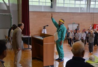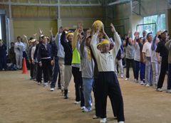 第41回千厩町老人スポーツ大会が6月9日(火)、千厩維新館と千厩おくらんどを会場に町内4地区から約300人の選手が参加して開催されました。当初は、県立千厩病院に隣接した千厩多目的グラウンドで開催する予定でしたが、雨のため昨年に引き続き千厩維新館と千厩おくらんどでの開催となりました。屋内での開催となったことから「徒競走」や「長寿リレー」は中止となり、「安全運転」や「ボール送り」、「玉入れ」など団体競技6種目を実施しましたが、奥玉チームは4種目で1位を獲得するなど他の地区を圧倒し、見事優勝を飾りました。これで奥玉チームは、平成23年の第37回大会から5連覇を達成しました。他のチームの成績は、準優勝が千厩、3位が磐清水、4位が小梨という結果でした。参加していただいた奥玉チームの皆さん、大変お疲れ様でした。