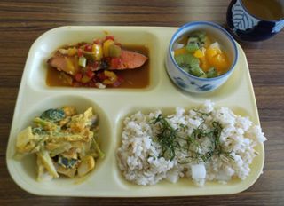 右下:山芋としらすの麦ごはん