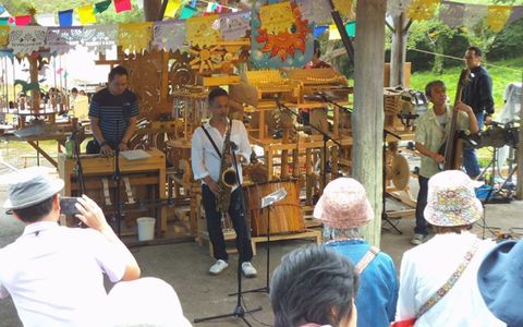 この「とびがもり水車音楽祭」は、地元大平地区の皆さんと関東のミュージシャンやアーティストが、それぞれの技術と知恵を出し合って作り上げた水車とミル(音楽演奏装置)が奏でる音楽と、地元の郷土芸能やプロミュージシャンが共演するもので、昨年に引き続き開催されたものです。