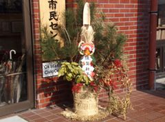 年末から奥玉市民センターの玄関に飾られていた立派な門松は、中日向長生会の皆さんから寄贈していただいたものです。お蔭様で今年も清々しい気持ちで新年を迎えることができました。