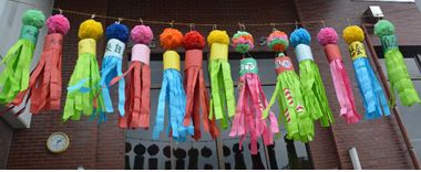 今年は色とりどりの七夕飾りがお祭りを盛り上げてくれました(各自治会作製)