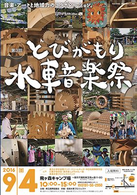 9月4日(日)に、飛ケ森キャンプ場で「とびがもり水車音楽祭」(主催:奥玉振興協議会)が開催されます。この音楽祭は今年で3回目となります。