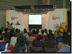 最終講座では、講師に岩手エビネ愛好会の松井哲さんから「エビネの種類や病気の見分け方、対処方法」など指導を受け、とうほく蘭展を研修しました。(写真左)数々の洋ランディスプレイやガーデニング、ミニ庭園などとともに色とりどりのランが展示されていました。(写真右)イベントステージでは、「家庭で楽しむ洋蘭づくり」「バラの独り言=バラづくり」のセミナーを受講する受講生もいました。その中で「蘭は、水やりをあまりしなくて良い。冬場は窓から40cm離して置く。肥料も12〜3月に咲く花は液肥4000倍から5000倍で薄くていい。」など育て方が比較的簡単なことも学びました。