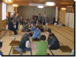 平成19年度奥玉振興協議会総会が1月6日午後、会員約40名が出席して奥玉公民館で開かれ、菅原一郎会長が「昨年は、新『一関市』誕生という中で、各種事業が盛大に開催できた。厚く御礼申し上げる。『千厩町まちづくり団体連合会』ができ、途中で会長に選出され、新しい時代の中で千厩地域の連携組織を深め地域づくりをすすめてきた。2007年がすばらしい年になるように。」とあいさつ。その後、議長に吉田陸穂氏を選出し、18年度事業報告・決算と19年度事業計画・予算の議案が原案どおり承認されました。その中で、奥玉郵便局の集配局を3月5日から廃止し、千厩郵便局が当たる予定であることも話されました。(写真上) 総会終了後、奥玉地区新年交賀会が来賓多数をお迎えし、約50名の出席のもと開催されました。市長代理で菊地宏雄一関市千厩地域自治区長、千葉康一郎岩手県議、一関市議会議員を代表して村上悌氏から新年の抱負やあいさつをいただき、来賓紹介がありました。その中で「おだやかな新春を迎えた。18年度は、地方自治の大転換の年だったが、真の自治の姿をこの地域から作り上げて、ますます活動してほしい。」「安心・安全な暮らしができるよう、知恵を出し合いながら地域の方々と共にがんばりたい。」「亥年は、災害が多い年と言われるが、安全で暮らせるような年を期待したい。」など今後に希望と期待のことばがありました。(写真下) 北村健郎一関市教育委員長の音頭で乾杯し、祝謡のあと各参加者同志が19年新春の交賀を深め、各界から抱負等も述べてもらいました。益々の発展と健勝を祈って万歳三唱でお開きとなりました。
