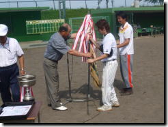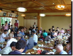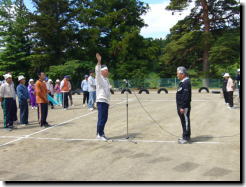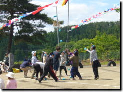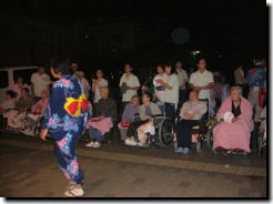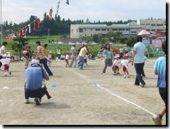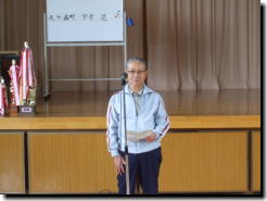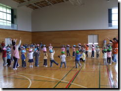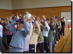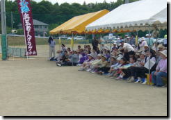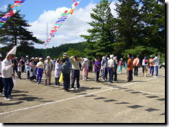 卆寿・米寿・85歳・80歳該当者や80歳以上全員に一関市や各団体から祝品が贈呈され、代表して藤野律子さんが「地域のために役立ち、周囲から愛される高齢者なれるように」とお礼をのべました。(写真上右)菅原一郎奥玉振興協議会長の音頭で長寿と健康を祝し乾杯しました。 アトラクションでは、奥玉保育園園児の「月夜のポンチャラリン音頭・在郷サンバ」(写真下左)や、町下婦人会から「長者の山」や寺崎前婦人会の「鰺ヶ沢甚句」、花貫婦人会の「おいとこ」等の踊り、会場から詩吟や踊りや歌で敬老者を祝福しました。最後に藤野秋男一関市議の音頭で益々の敬老者・参会者の健勝を祈って万歳三唱でお開きとしました。敬老者は楽しいひとときを過ごしました。