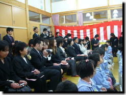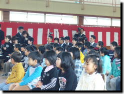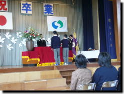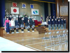 6年生24名が、在校生や来賓、父母、先生方に呼びかけや合唱で「希望と夢を持って進んで行きます。在校生の皆さんすばらしい学校にして下さい。」と力強く感謝と別れの言葉をのべました。在校生から卒業のみなさんに「私たちを優しくおし教えていいただいたお兄さんお姉さんありがとうございます。中学生になってもがんばって下さい。」と全員合唱し、伝統をしっかり受け継ぐことを約束しました。
