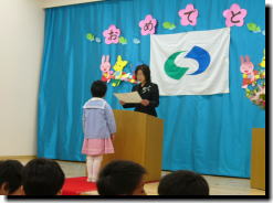 「小学生になったら友達をいっぱいつくって、勉強もがんばって」と加藤園長