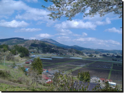 下は、橘城から室根山を望む。(水田は、耕起作業も順調に進んでいる。)=4月22日撮影。 |