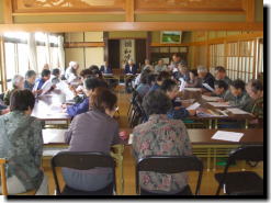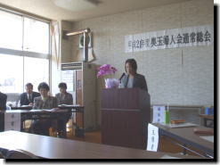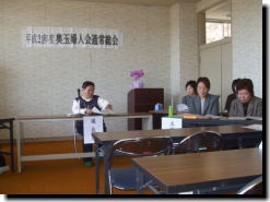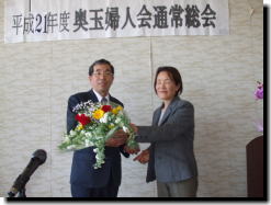 平成21年度奥玉婦人会(宍戸一枝会長)の総会が、3月29日午前10時から奥玉公民館で40人余りが出席して開催されました。 総会は議長に菅野米子さんを選出し、平成20年度事業報告並びに収支決算、平成21年度事業計画、会費の額並びに徴収方法、収支予算を審議、原案のとおり決定になった。しかし、同時に行われた会長以下の役員改選は後日幹事が集まって人選を進めることを承認して閉会した。総会終了後、同月31日をもって退職になる小野寺洋一奥玉公民館長に花束を贈りこれまでの感謝を表した。 新役員については、幹事会が何回か持たれ菅野昭子新会長が誕生した。