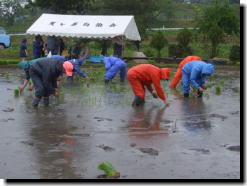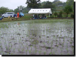 毎年恒例の地蔵田(奥玉字坂下)の田植えが5月17日午前10時から、0.8アールの円形圃場で地蔵院総代始め近隣のみなさんが集まり手植えを行いました。 この行事は、地蔵田伝承代表伊藤薫さんと地蔵院大塲浩俊住職が呼びかけ五穀豊穣、諸縁吉祥、諸災消除をお地蔵様にお祈りしながら田植えをするもので、円の中心から外側に向かって渦巻状に手植えするという昔からの習慣になっています。 作業は、先ずはお地蔵様に手を合わせてから、子どもたちが投げ入れた苗を大人たちが手植えを行いました。住職の奥さんが裸足になり田植えを手伝っている姿が印象的でした。作業終了後には、煙草時が振舞われ、無事田植えが終わったことを感謝しながらおいしくいただきました。